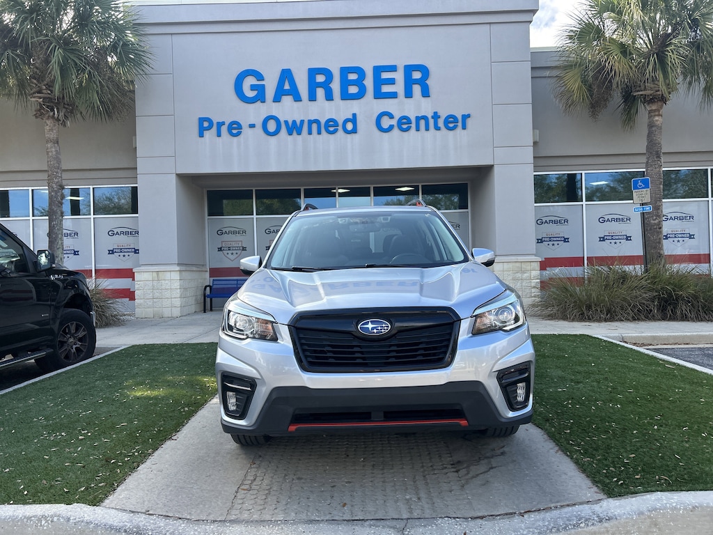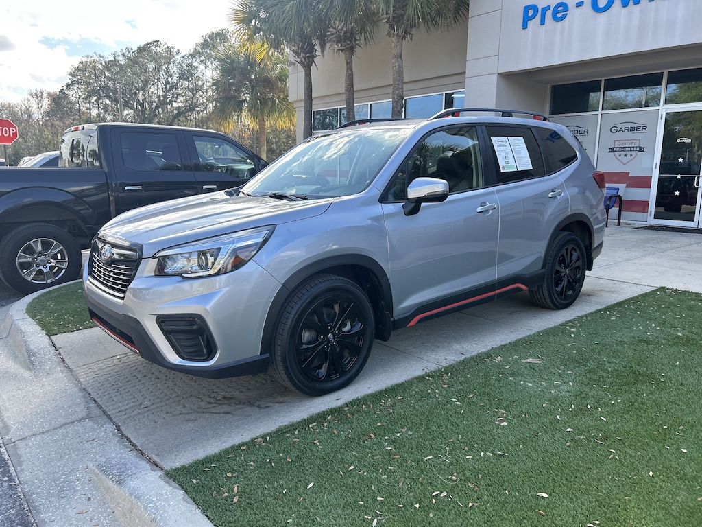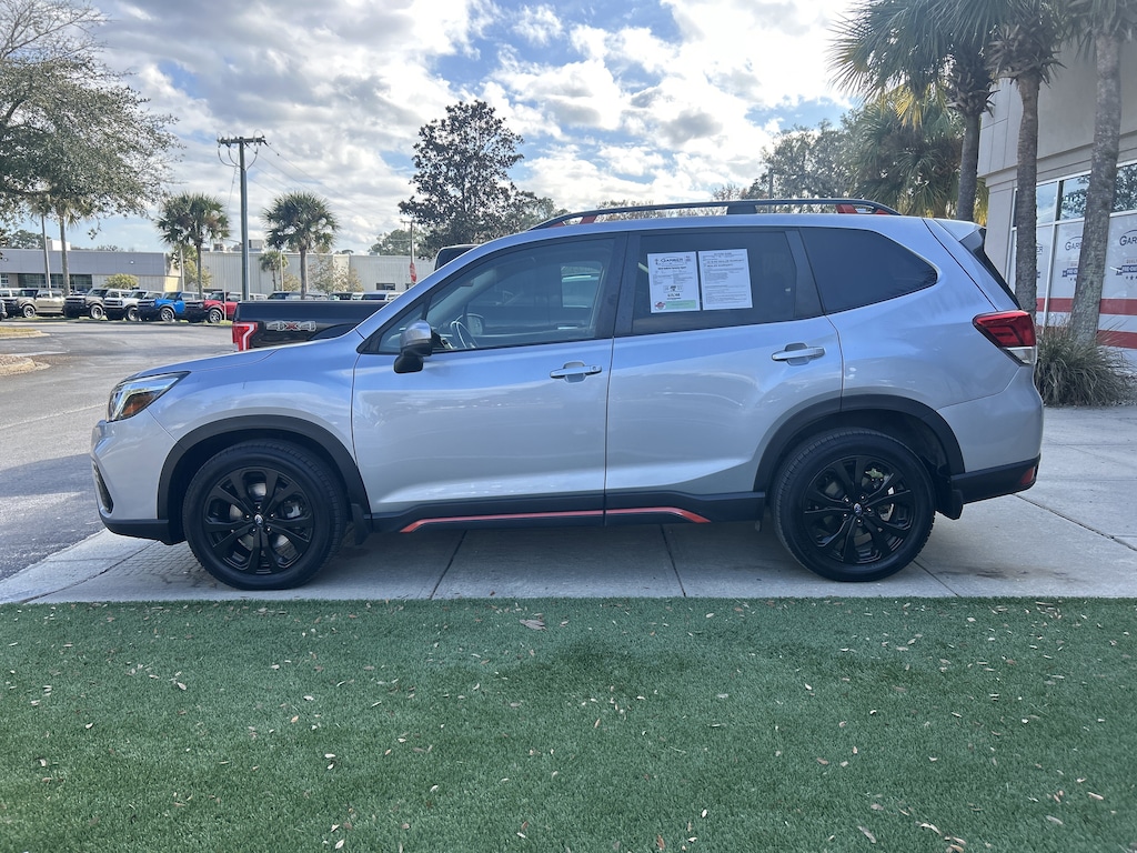 2020 Subaru Forester Sport Ice Silver Metallic 4-Wheel Disc Brakes, 6 Speakers, ABS brakes, AM/FM radio: SiriusXM, Auto High-beam Headlights, Automatic temperature control, CD player, Driver vanity mirror, Electronic Stability Control, Emergency communication system: STARLINK Safety and Security (Subscription Required), Exterior Parking Camera Rear, Four wheel independent suspension, Front reading lights, Fully automatic headlights, Heated door mirrors, Heated Front Bucket Seats, Illuminated entry, Leather Shift Knob, Low tire pressure warning, Outside temperature display, Overhead console, Paddle-Shift Control Switches, Passenger vanity mirror, Power door mirrors, Power driver seat, Power moonroof: Panoramic, Power windows, Radio: Subaru Starlink 6.5" Multimedia Plus System, Remote keyless entry, Security system, Speed control, Split folding rear seat, STARLINK/Apple CarPlay/Android Auto, Steering wheel mounted audio controls, Telescoping steering wheel, Tilt steering wheel, Wheels: 18" x 7.0J Black Finish Aluminum Alloy.